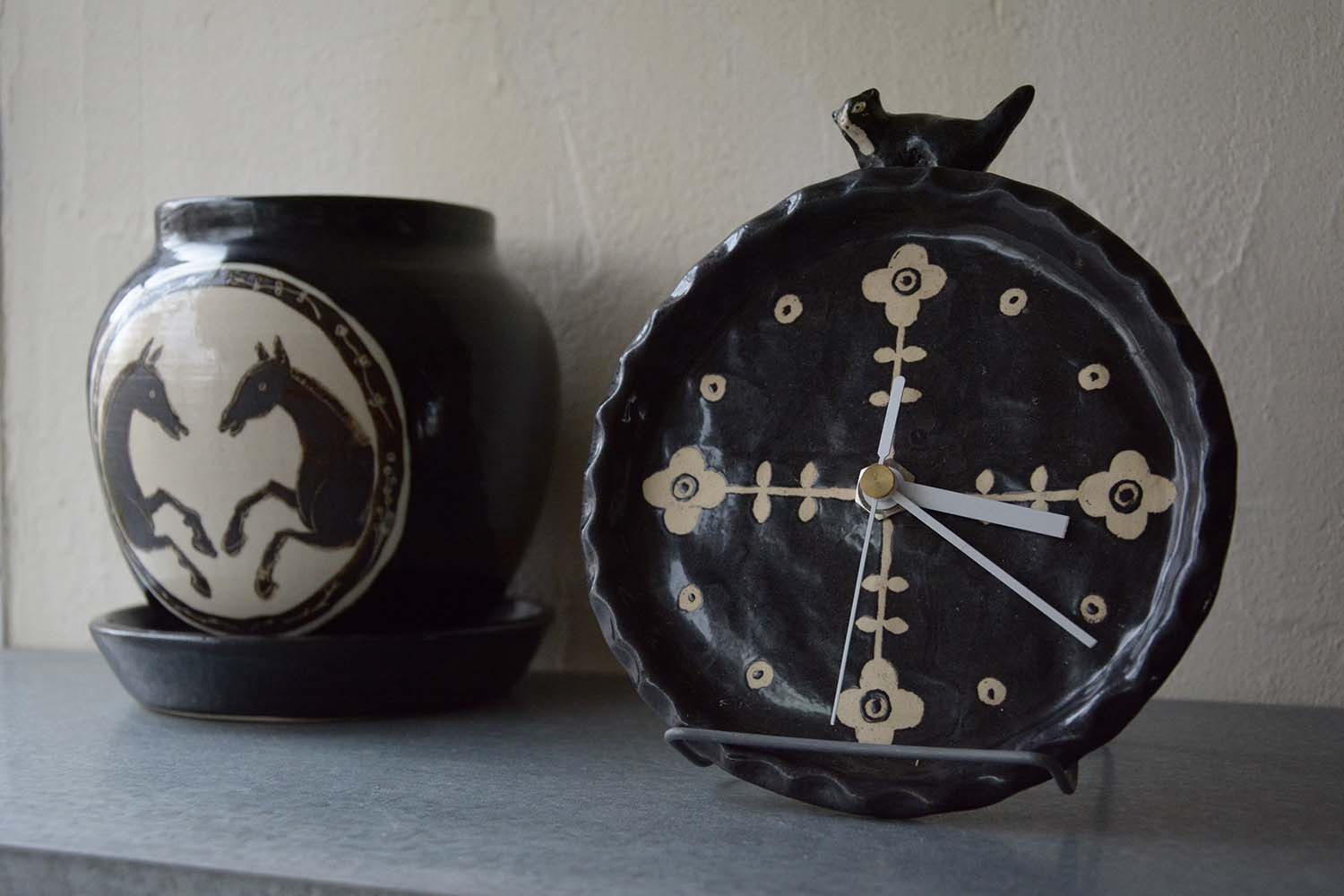 加藤 舞さんは栃木県窯業技術支援センター伝習生・研究生を修了し、2023年に栃木県益子町に築窯・独立しました。その作品は柔らかで温かみのある質感と躍動感のある絵付け、伝統的かつ現代的なフォルムが魅力的です。凛とした美しさがあり、どこかノスタルジックな趣を感じさせてくれます。