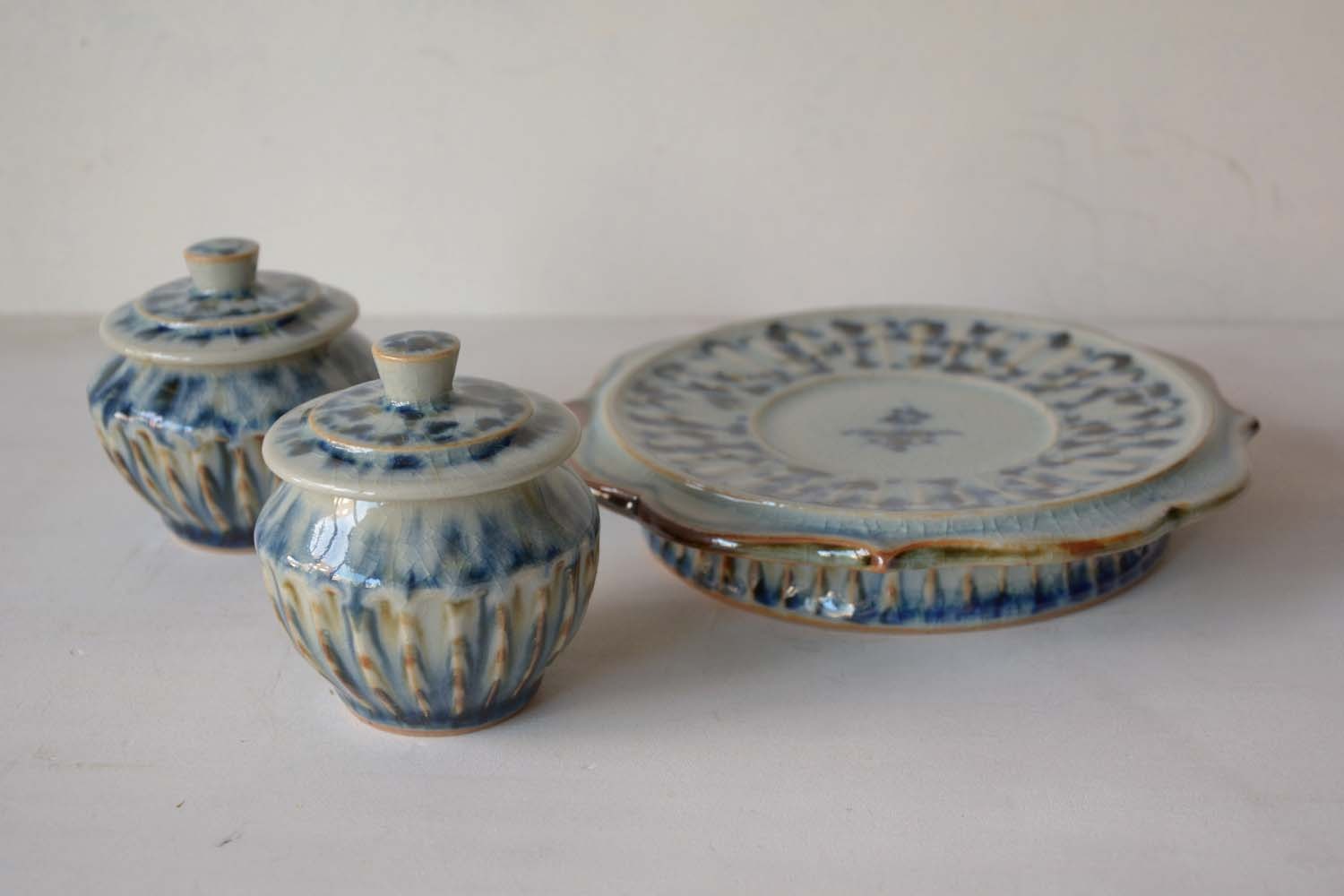 陶房遊は松田啓司さんが砥部焼中田窯で8年間修行した後、2003年に愛媛県で開窯。現在は松田奈織子さんと夫婦二人三脚で作陶に取り組んでいます。地元で採れる原材料を基本に技法などを工夫しながら毎日の食卓で末永く使える器づくりを行なっています。