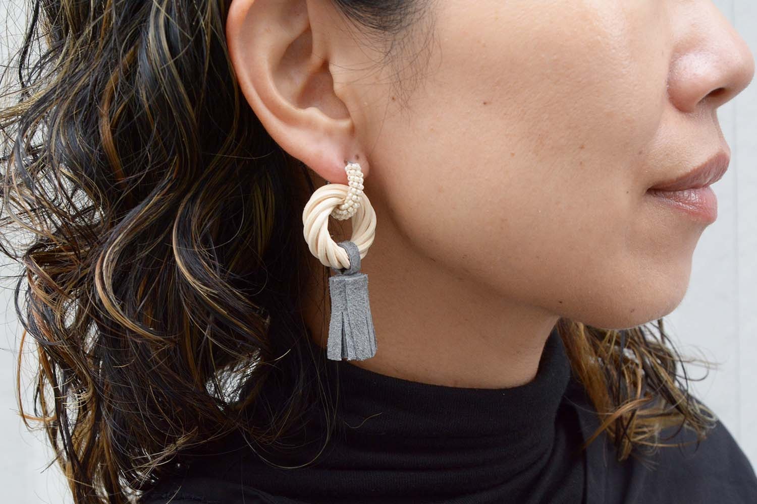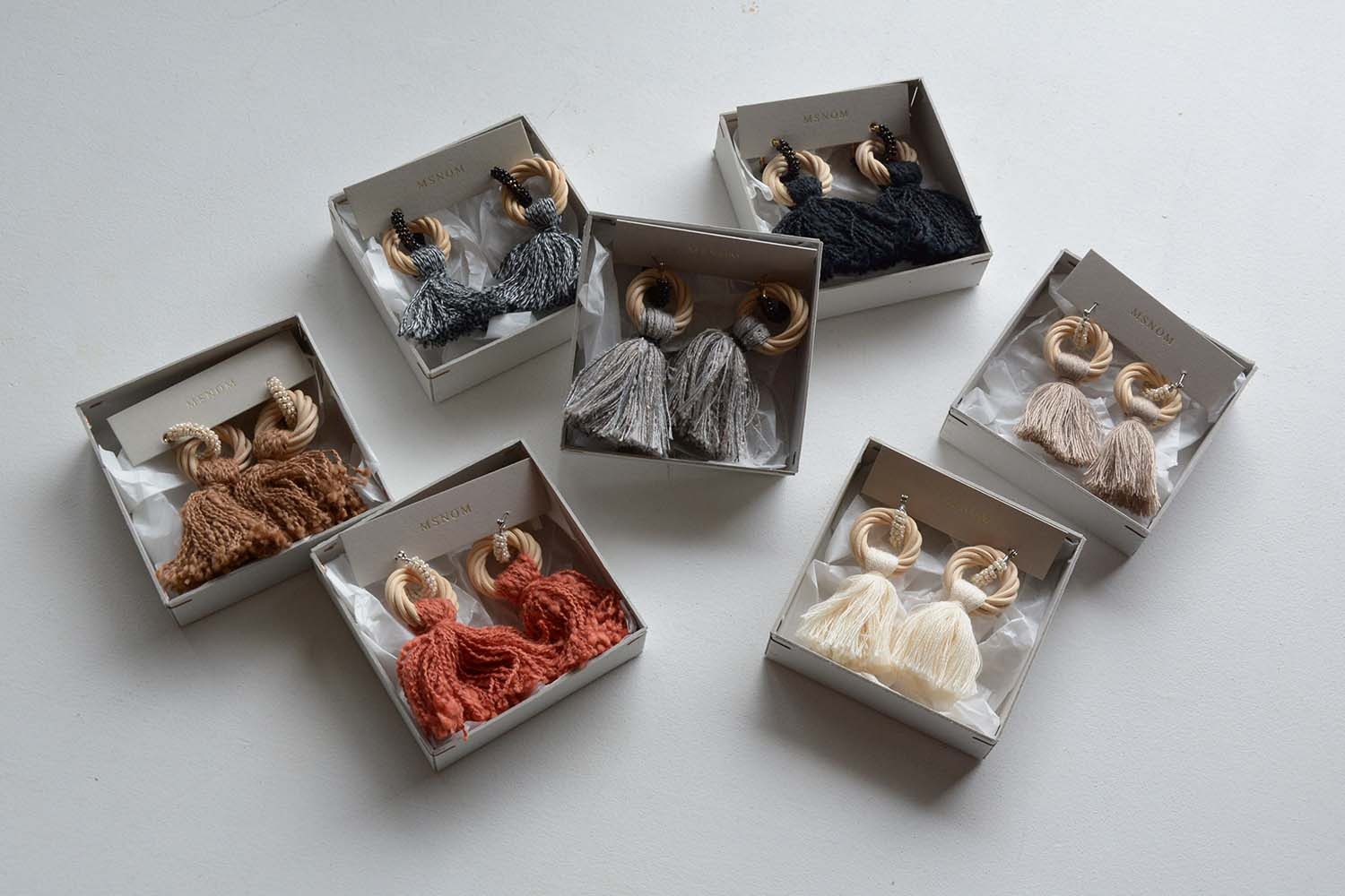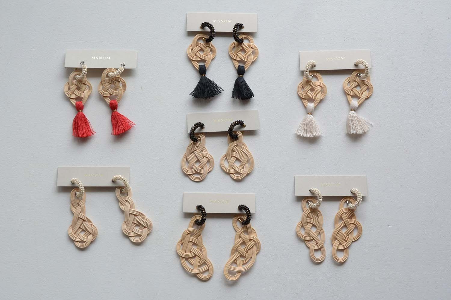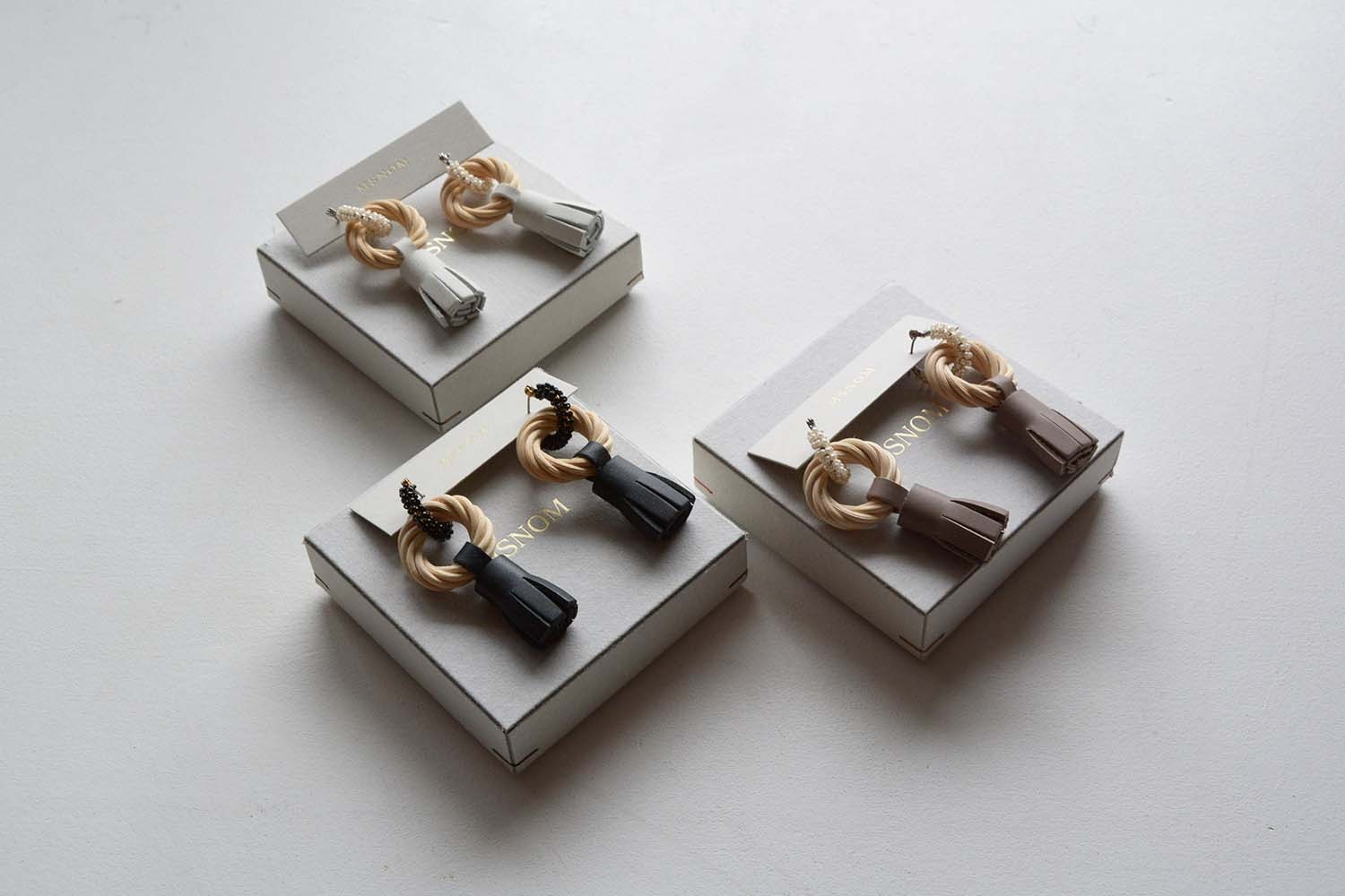 MSNOMは籐(ラタン)パーツと異素材を組み合わせ、オリジナルで美しいデザインの作品を丁寧な手仕事で制作するブランド。この展示会では通年使えるイメージのバックやアクセサリーを中心に素敵な作品が並びます。是非ご期待ください。