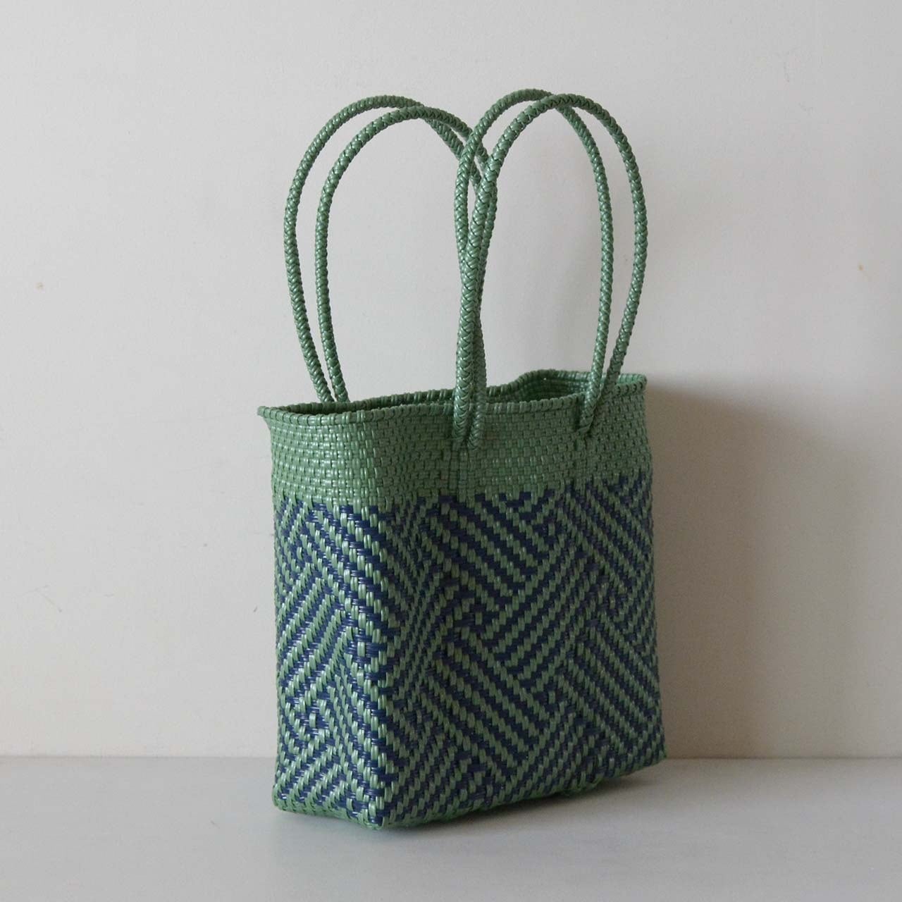 素材がプラスチック製の紐なのにちっともチープには見えず、シンプルなコーディネイトのアクセントになるアイテムです。メキシコの職人の手で一つ一つ編まれ、模様や色の組み合わせはさまざまです。大変丈夫で雨の日も気にせず使え、汚れても丸ごと洗えて大変便利です。