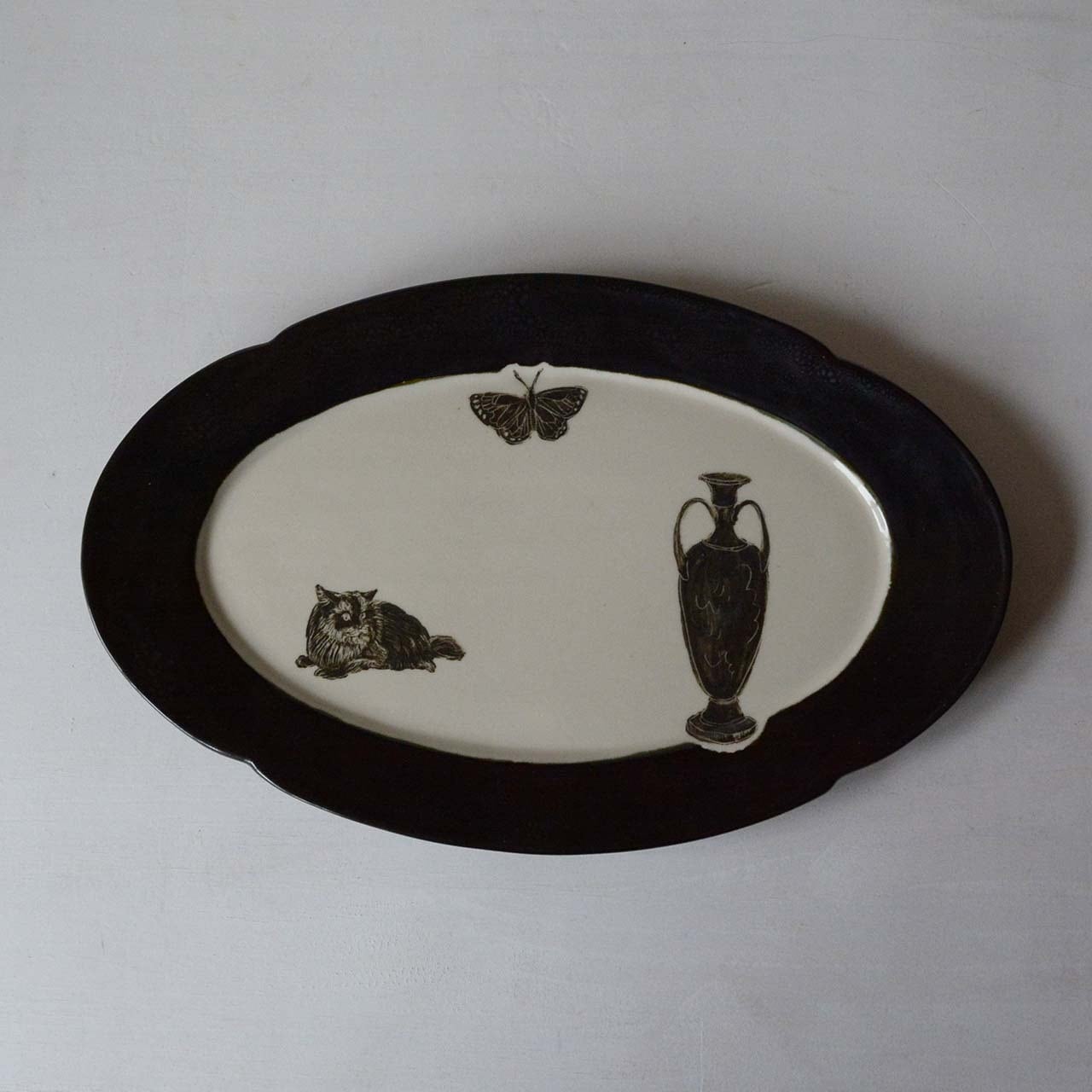長﨑絢 猫と壷と蝶のオーバル(25-030)