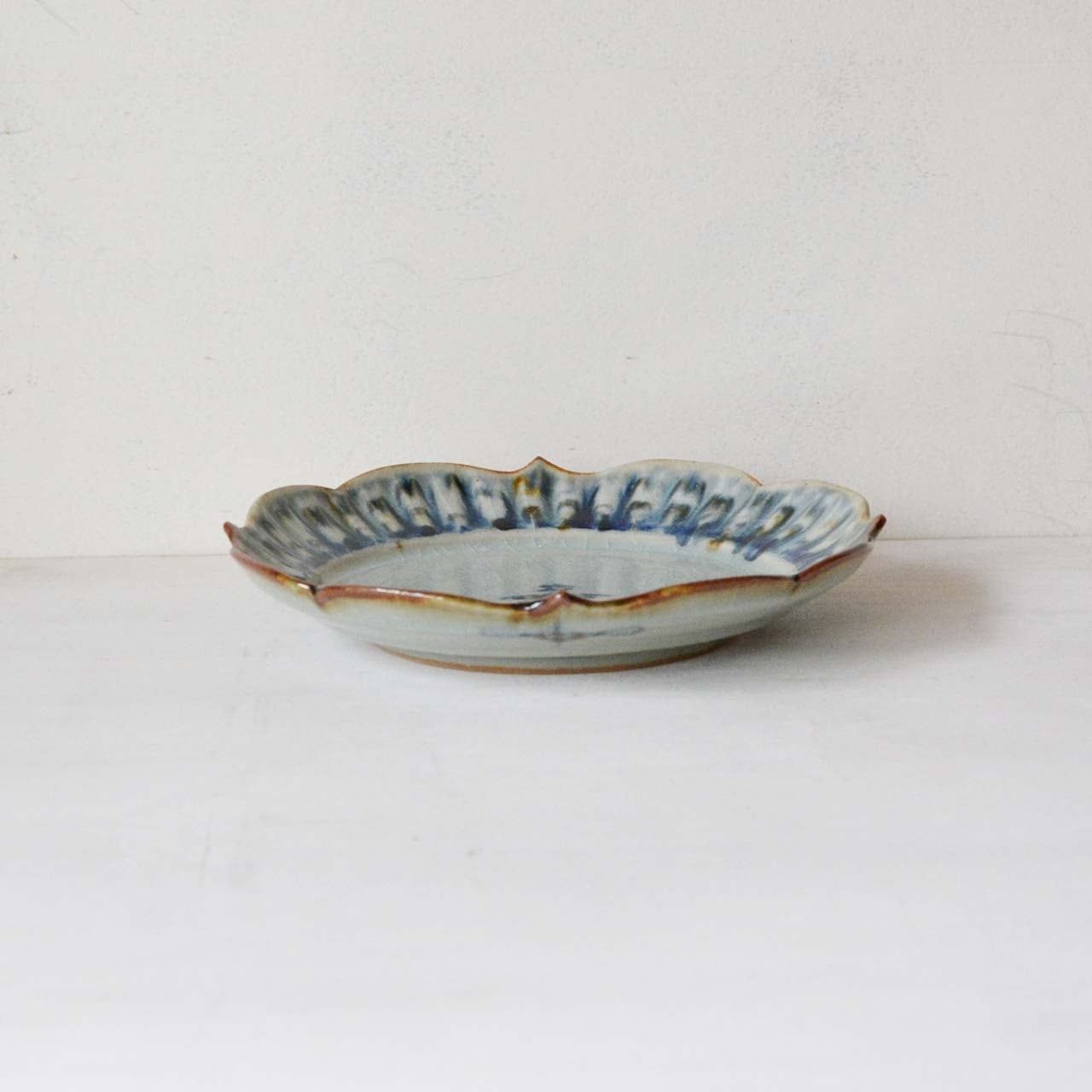 陶房 遊 5.5寸輪花リム皿 錆青(006)