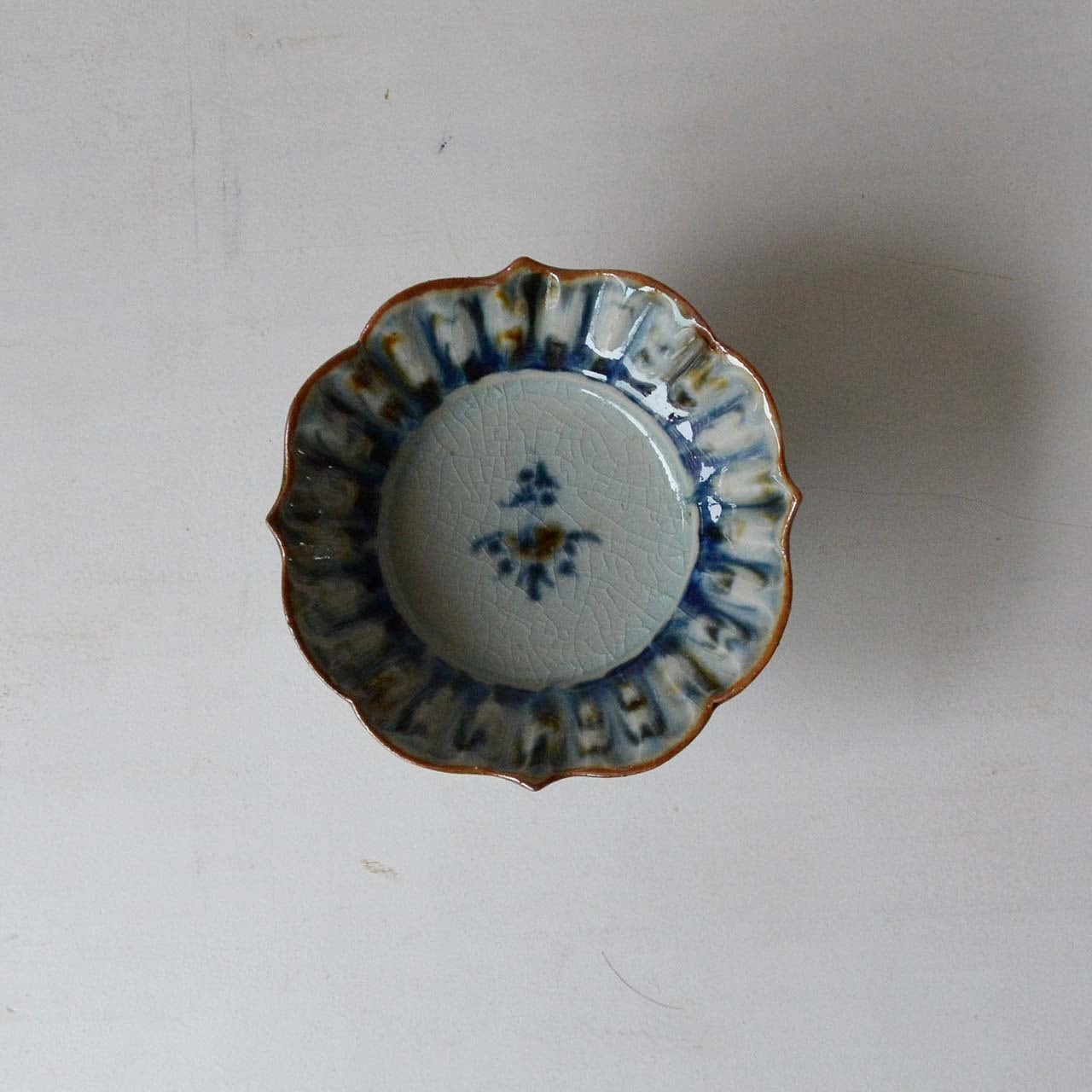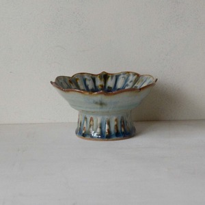 陶房 遊 輪花足付鉢(豆) 錆青(014)