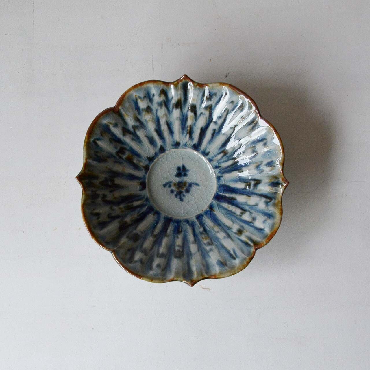 陶房 遊 輪花平鉢(小) 錆青(016)