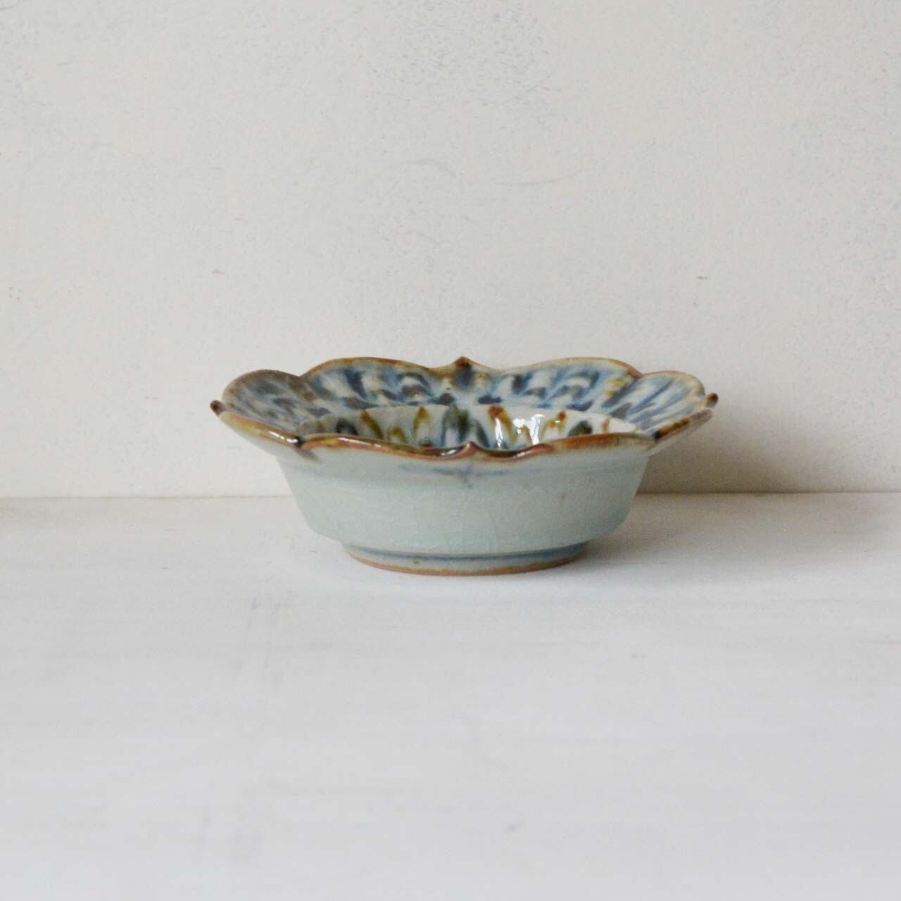 陶房 遊 輪花しのぎ深鉢(豆) 錆青(018)