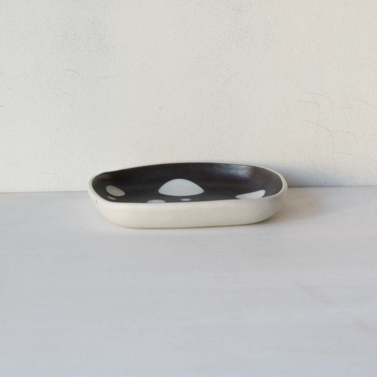 芦澤和洋さんは静岡県富士市で活動する陶芸家。京都精華大学美術学部造形学科(陶芸専攻)を卒業、山梨県忍野村の會田雄亮研究所の勤務を経て2006年に「陶芦澤」を開設して独立しました。2014年からはスリップウェアの制作を開始し、偶然性を楽しみながら実験を重ね、新しい作風に挑戦し続けています。