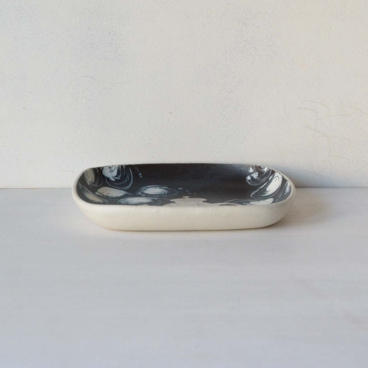 芦澤和洋さんは静岡県富士市で活動する陶芸家。京都精華大学美術学部造形学科(陶芸専攻)を卒業、山梨県忍野村の會田雄亮研究所の勤務を経て2006年に「陶芦澤」を開設して独立しました。2014年からはスリップウェアの制作を開始し、偶然性を楽しみながら実験を重ね、新しい作風に挑戦し続けています。