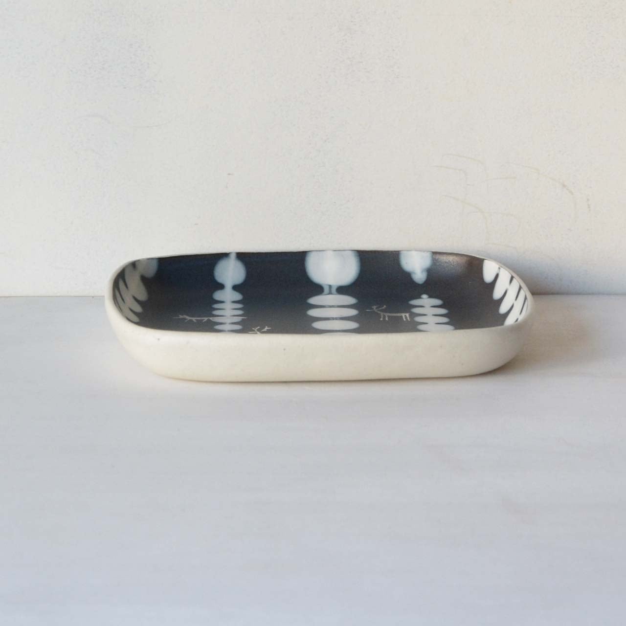 芦澤和洋さんは静岡県富士市で活動する陶芸家。京都精華大学美術学部造形学科(陶芸専攻)を卒業、山梨県忍野村の會田雄亮研究所の勤務を経て2006年に「陶芦澤」を開設して独立しました。2014年からはスリップウェアの制作を開始し、偶然性を楽しみながら実験を重ね、新しい作風に挑戦し続けています。
