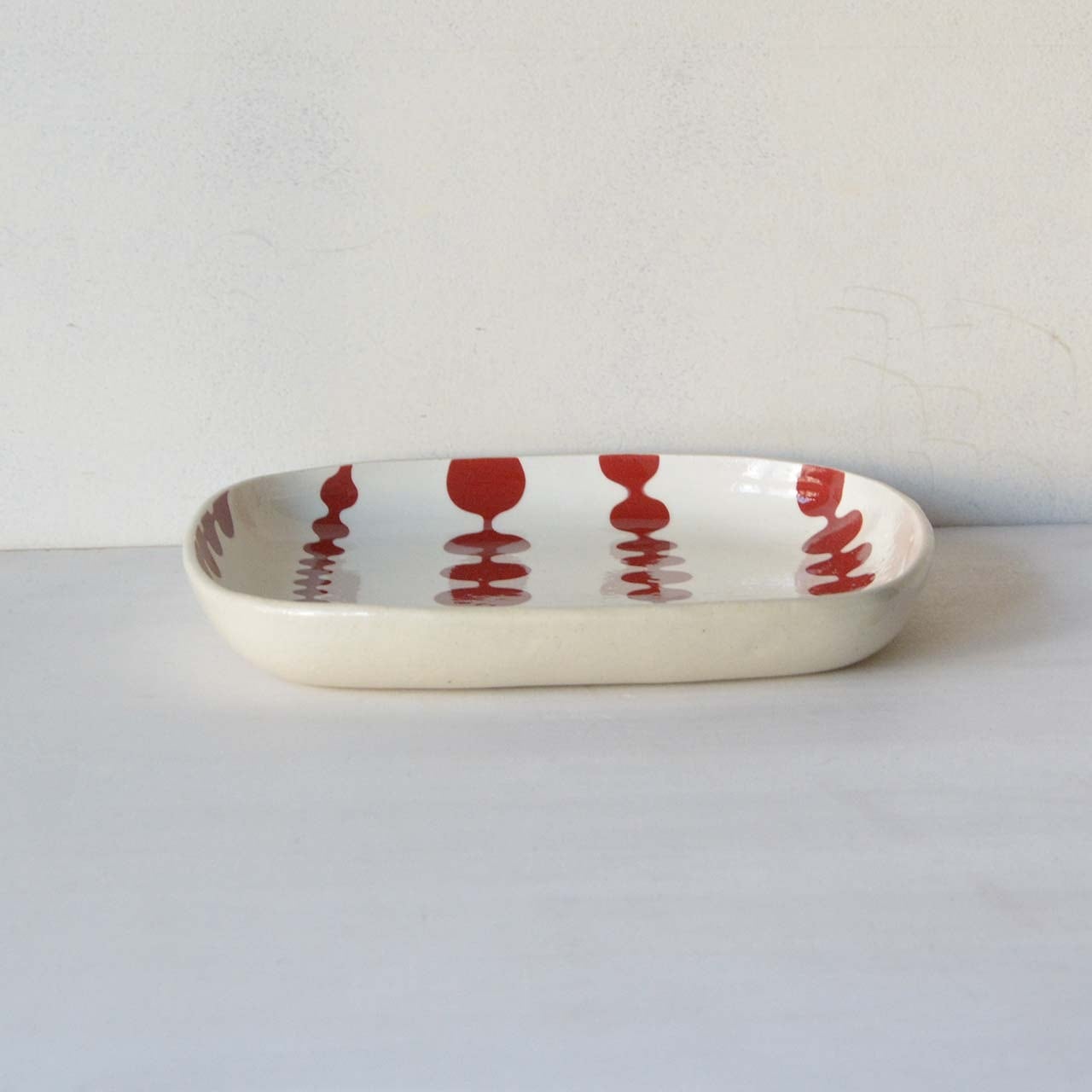 芦澤和洋さんは静岡県富士市で活動する陶芸家。京都精華大学美術学部造形学科(陶芸専攻)を卒業、山梨県忍野村の會田雄亮研究所の勤務を経て2006年に「陶芦澤」を開設して独立しました。2014年からはスリップウェアの制作を開始し、偶然性を楽しみながら実験を重ね、新しい作風に挑戦し続けています。