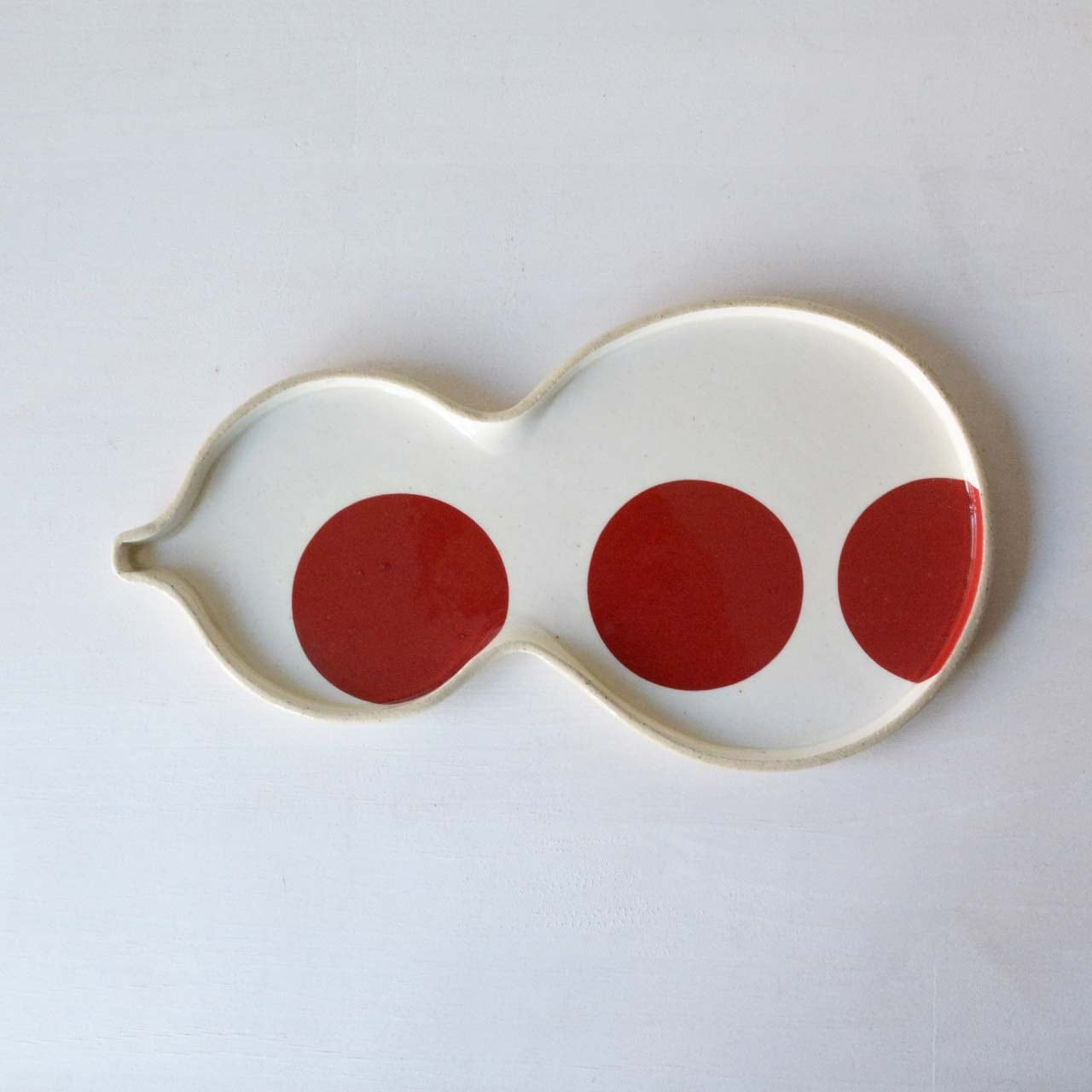 芦澤和洋 赤 ひょうたん平皿(025-C)