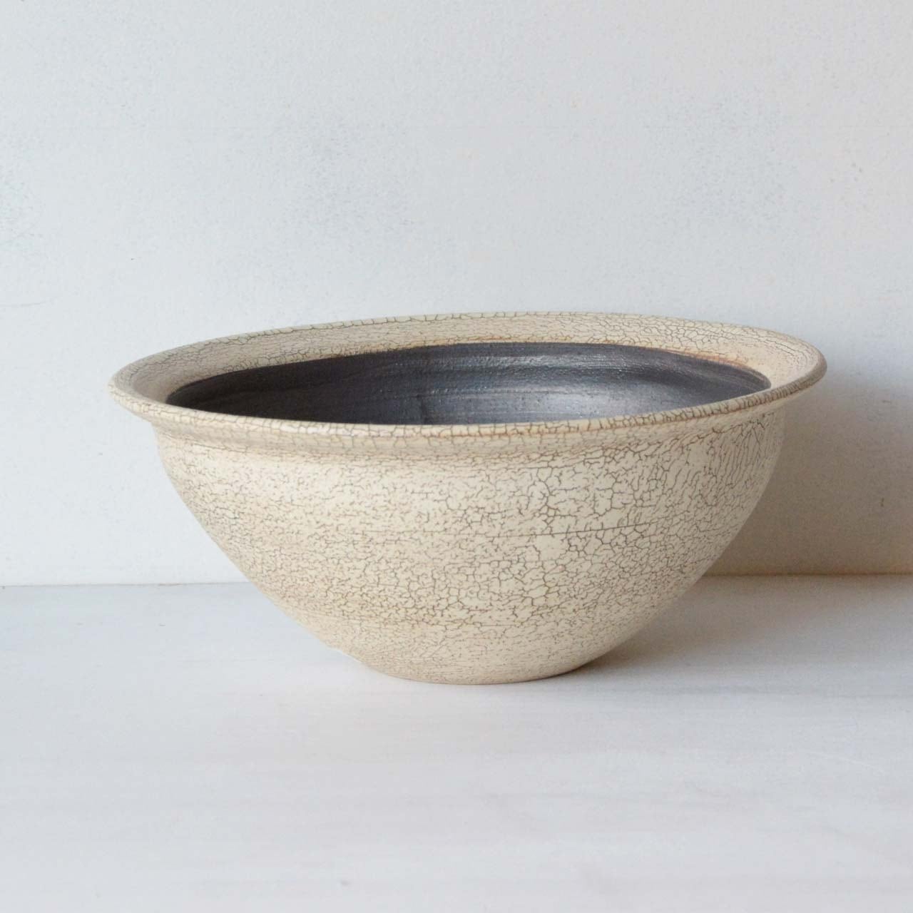 吉永哲子 リム鉢 大 ひび白 掛分(ユ-A)
