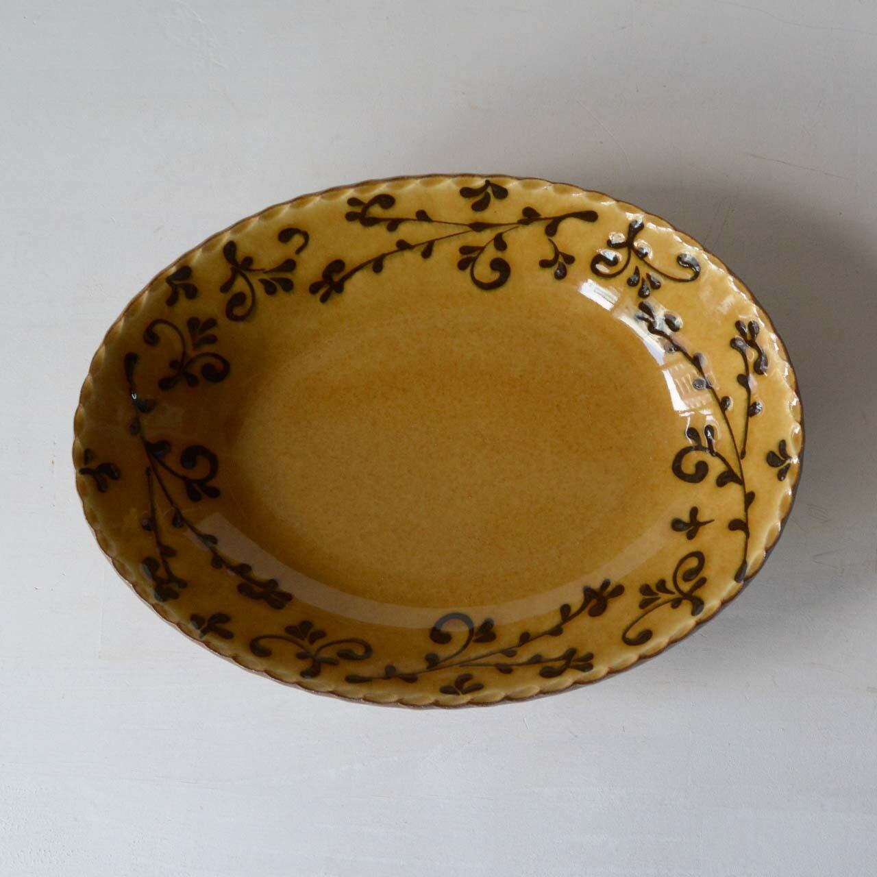 久保田健司 楕円鉢 唐草 黄色(013)