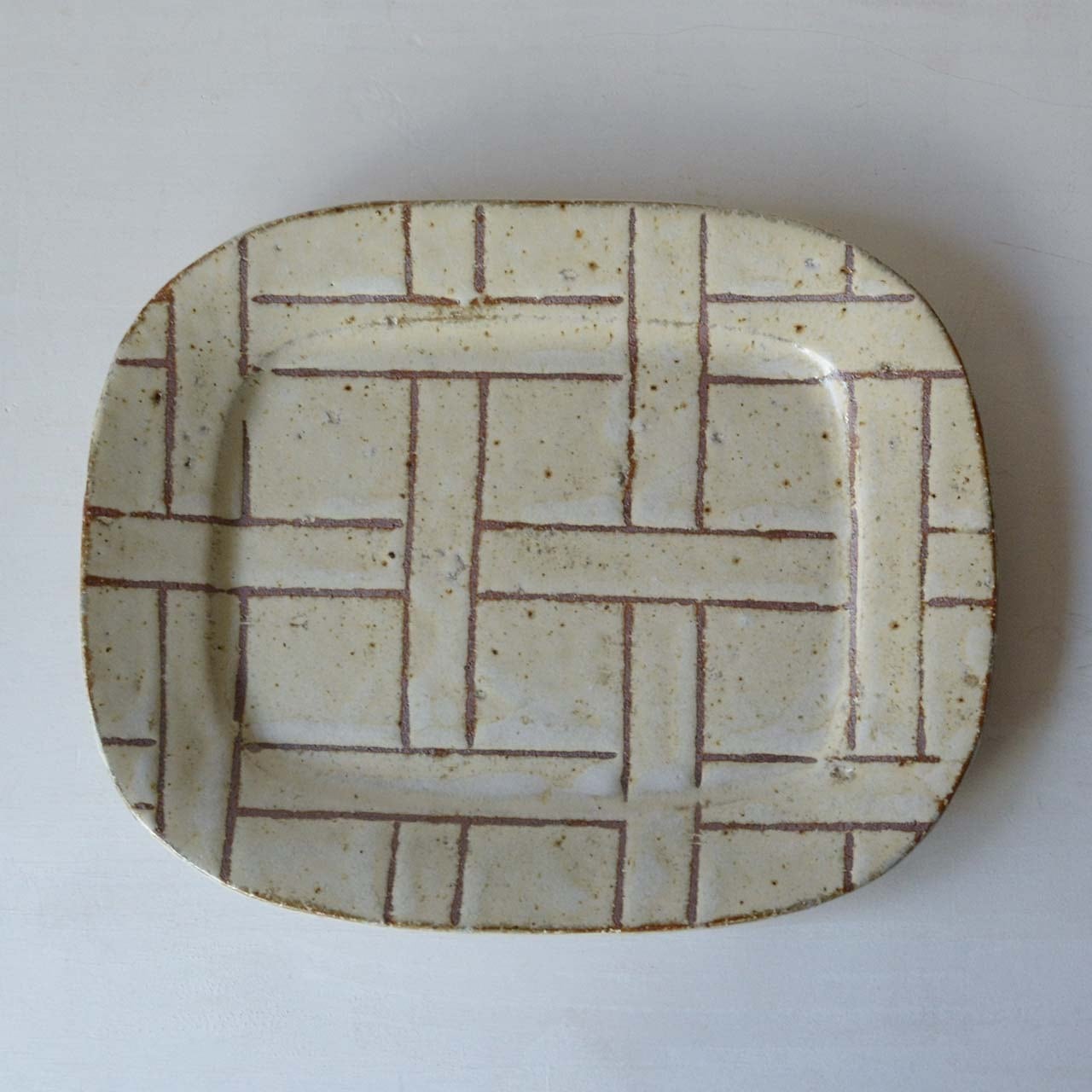 加藤恵津子 線描リムゆる四角皿(26-R)