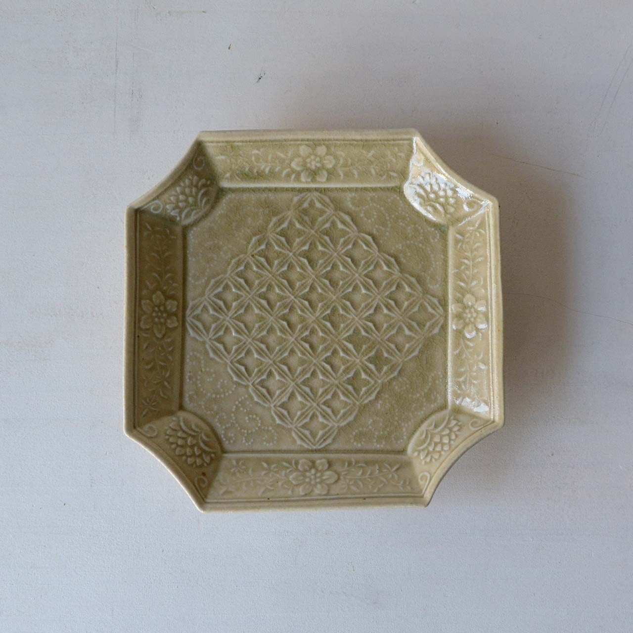 石田裕哉 灰釉陽刻隅入四方皿(26-008)