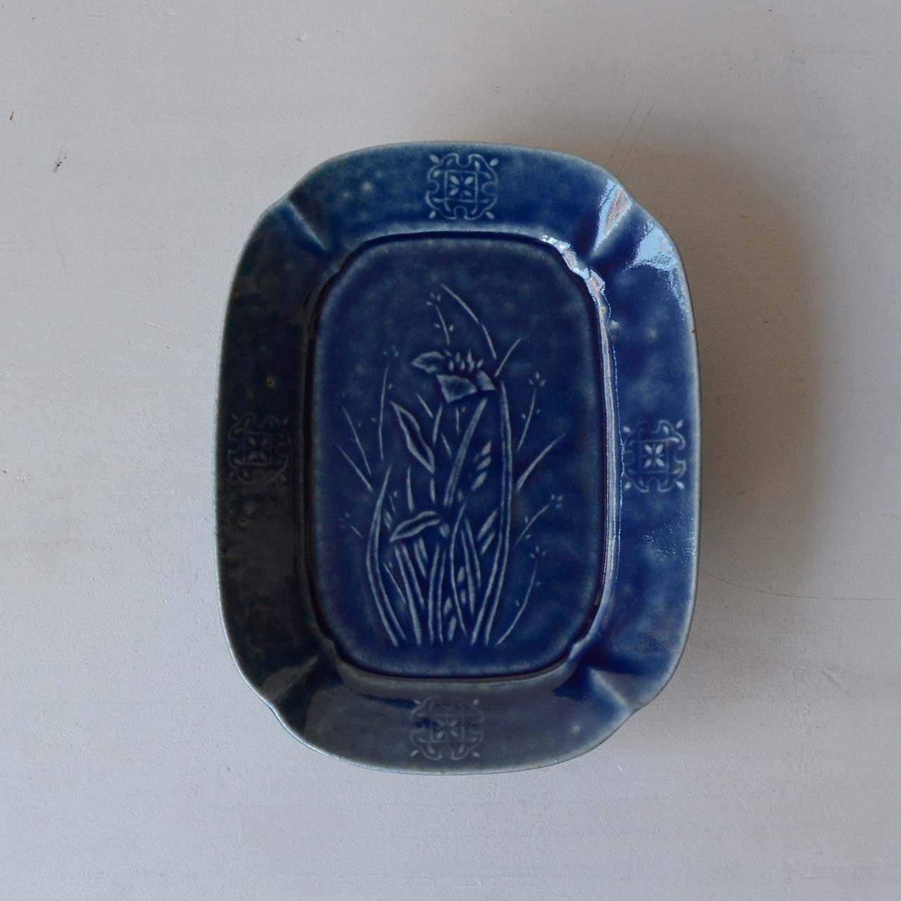 石田裕哉 ルリ釉菖蒲文皿 (26-010)