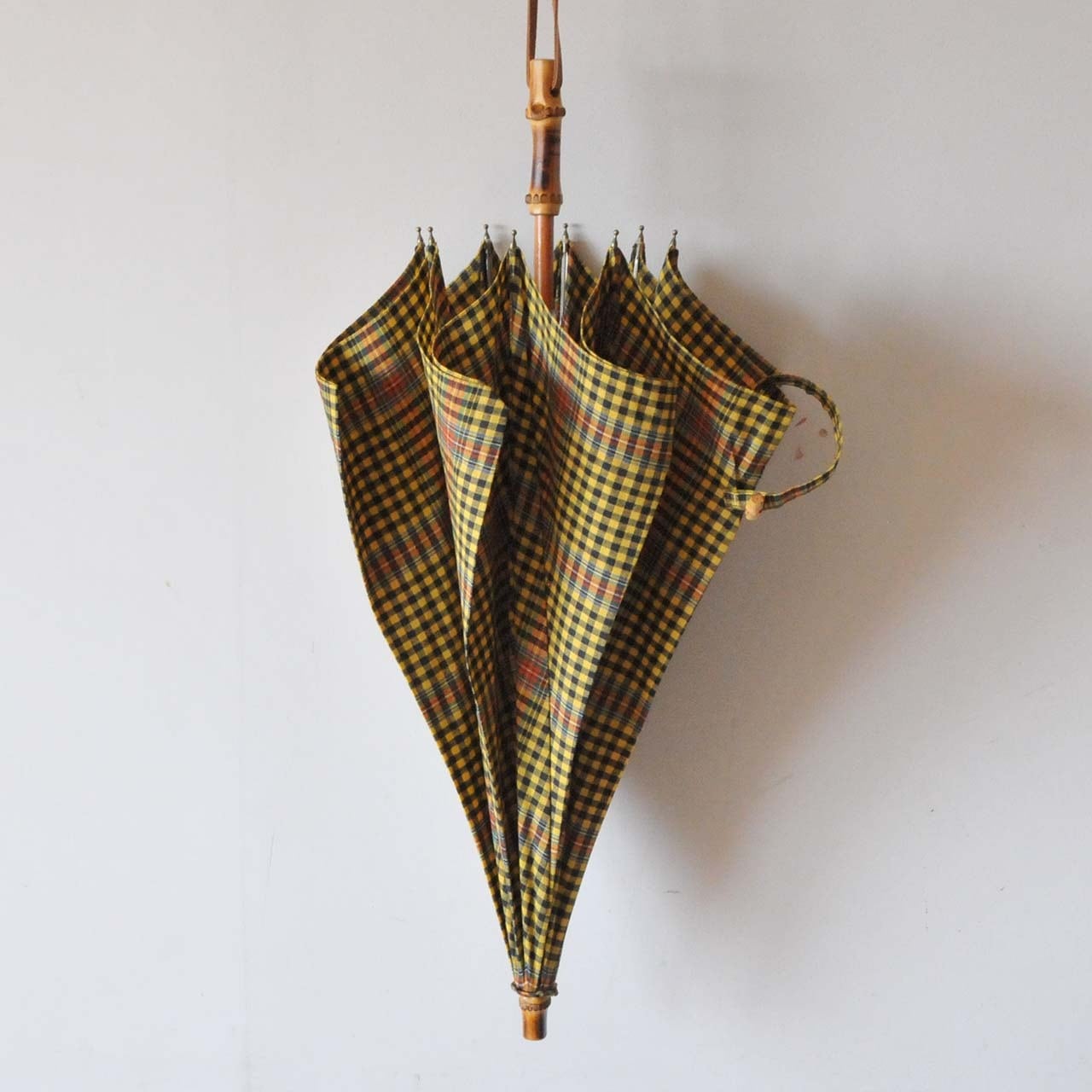 インドのマドラスチェックを使⽤した⽣地で作った⽇傘です。