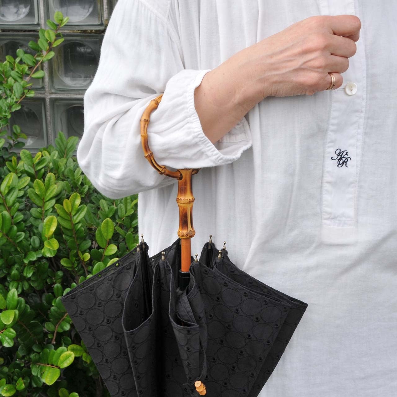 ・傘を開くときに袖口に引っ掛けたり、ネーム(傘を巻いてまとめる紐)が露先(傘の先端)にかかったまま開くと、傘骨が曲がってしまうことがあるのでご注意ください。