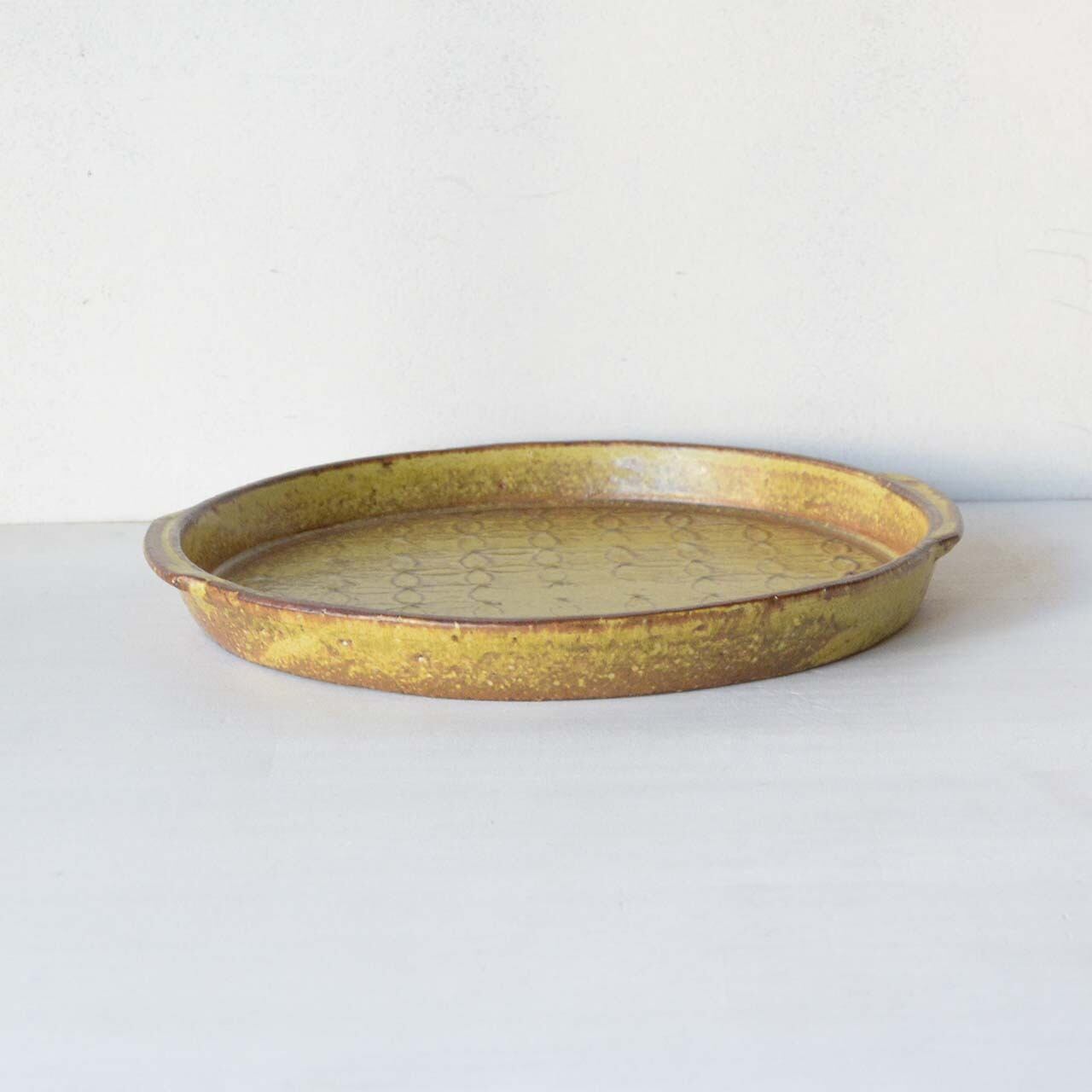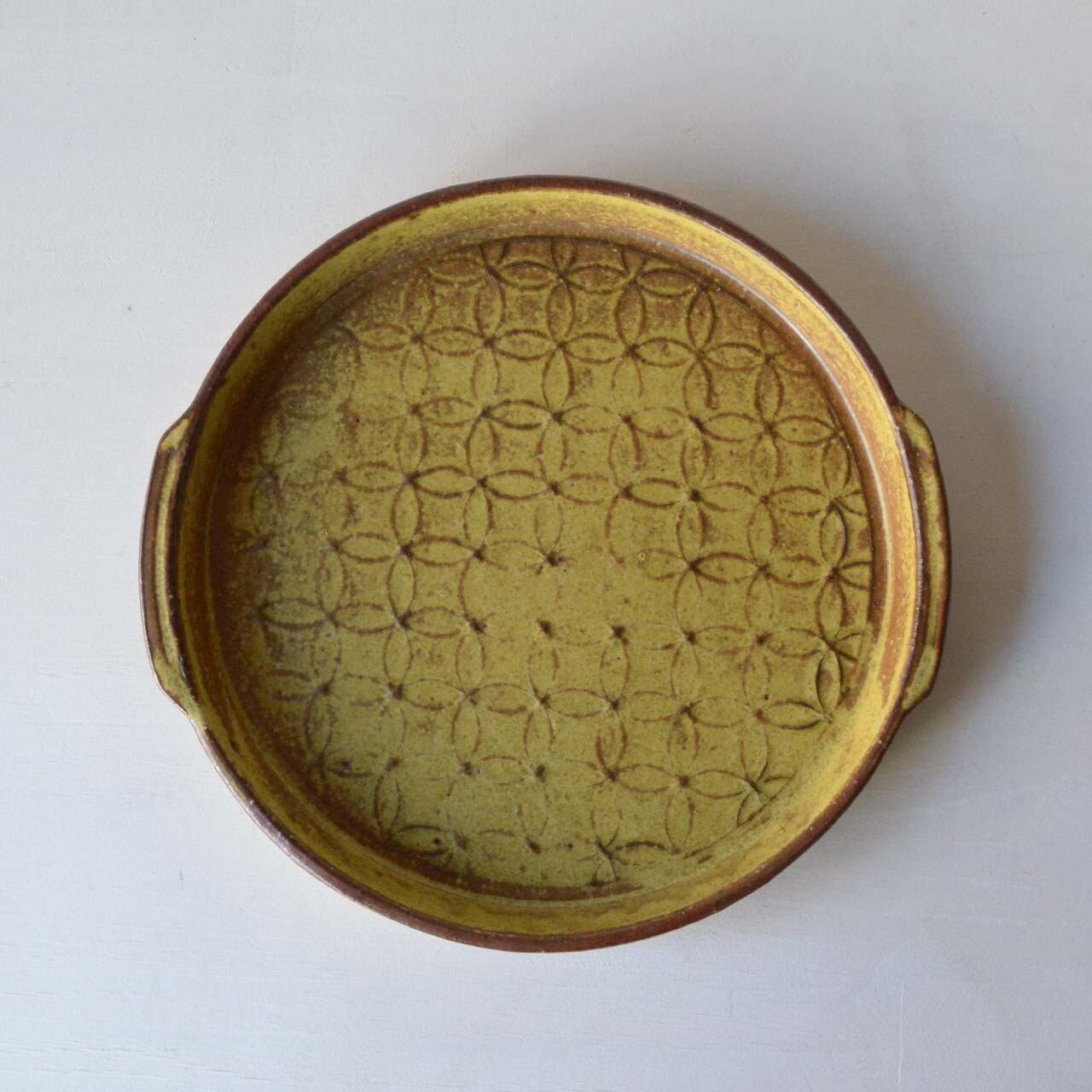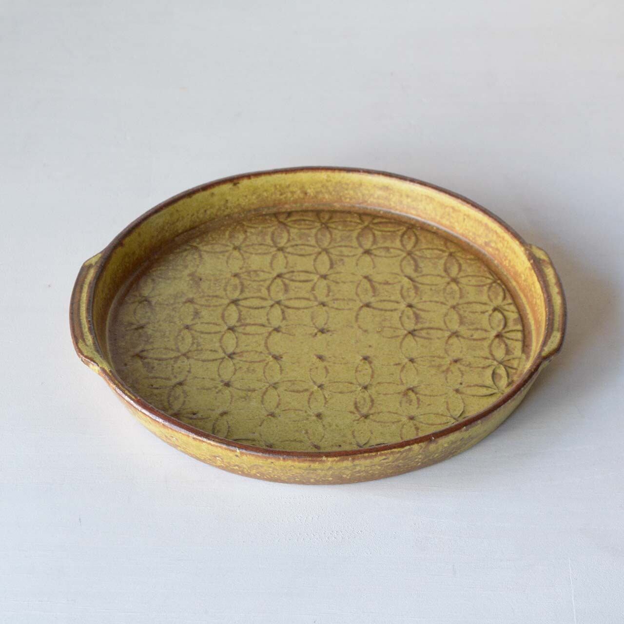 サイズ:直径約20cm x 取手も含む最大幅約21.5cm x 高さ約2.5cm